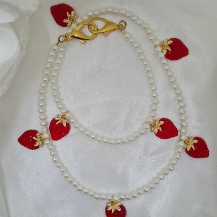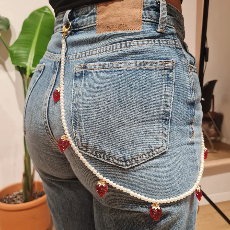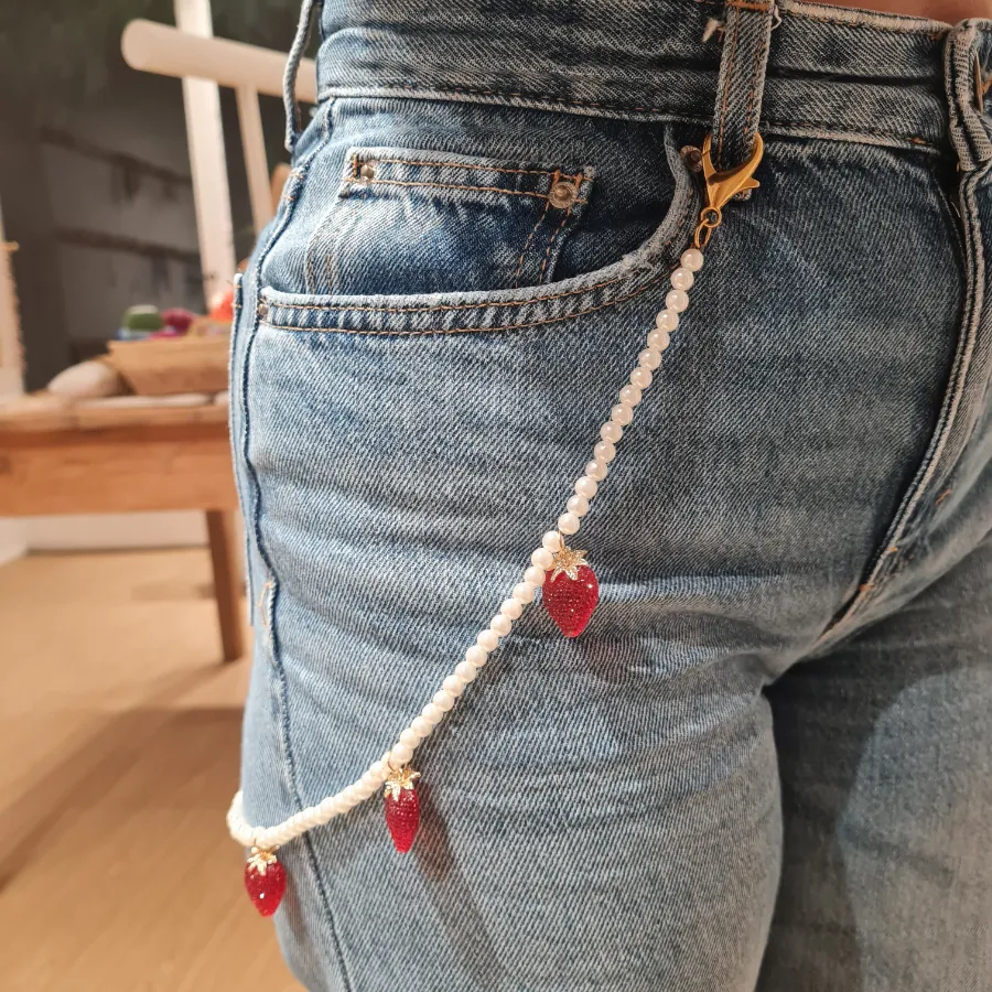Αναβάθμισε το casual στυλ σου με την Strawberry Pearl Chain, μια παιχνιδιάρικη αλλά κομψή αλυσίδα παντελονιού που δίνει αμέσως χαρακτήρα σε κάθε τζιν. Οι λευκές περλίτσες δένουν με κόκκινες φραουλίτσες και χρυσές λεπτομέρειες, δημιουργώντας έναν συνδυασμό που θυμίζει καλοκαιρινό dessert αλλά φοριέται άνετα όλο τον χρόνο.