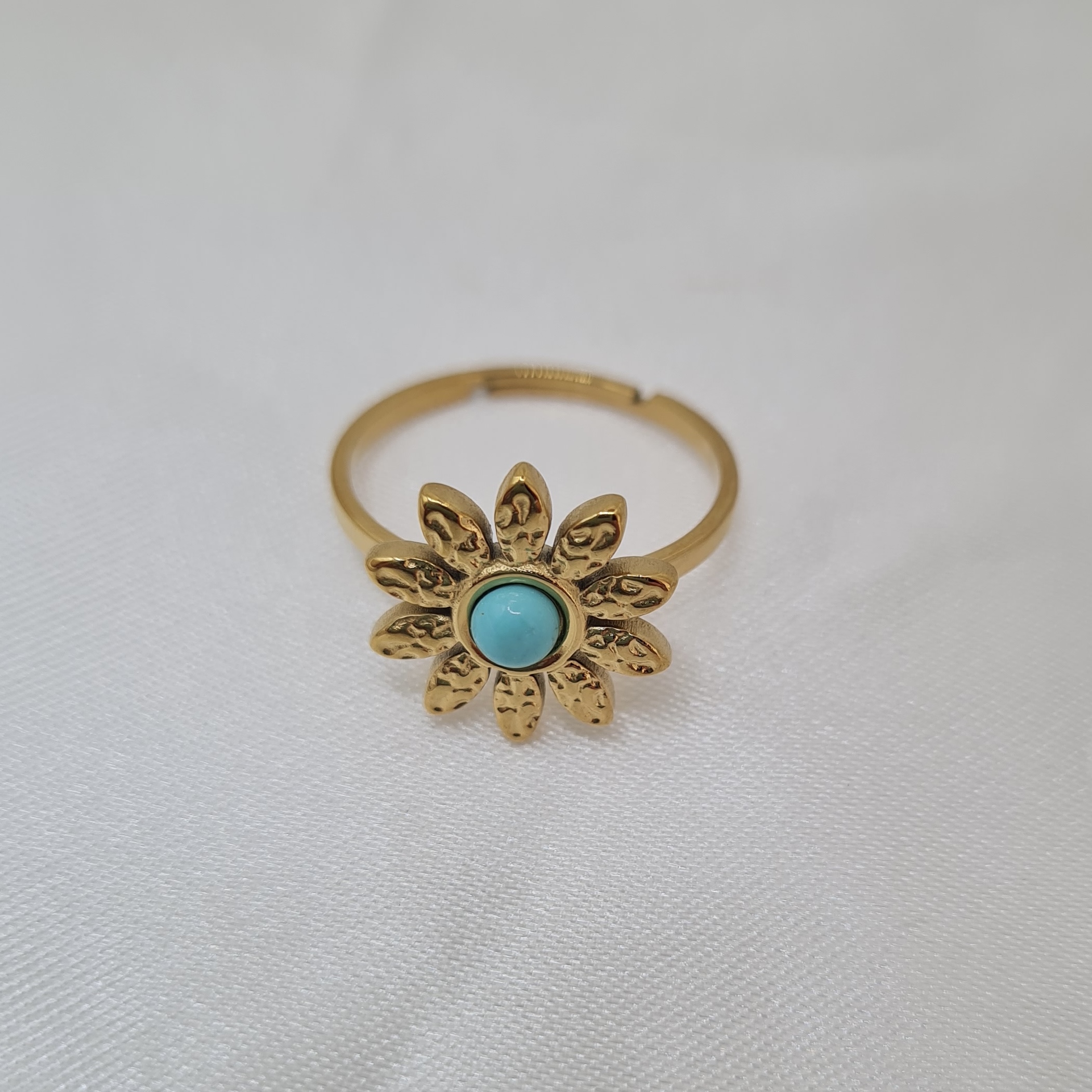 Ένα λουλουδάκι που δεν μαραίνεται ποτέ! Αυτό το γλυκό δαχτυλιδάκι με το λουλούδι και την παιχνιδιάρικη γαλάζια περλίτσα στο κέντρο του, είναι σαν να φυτεύτηκε απευθείας στον καρπό σου. Δροσερό, ρομαντικό και διακριτικά λαμπερό ιδανικό για κάθε μέρα που θες να ανθίζεις με στιλ.