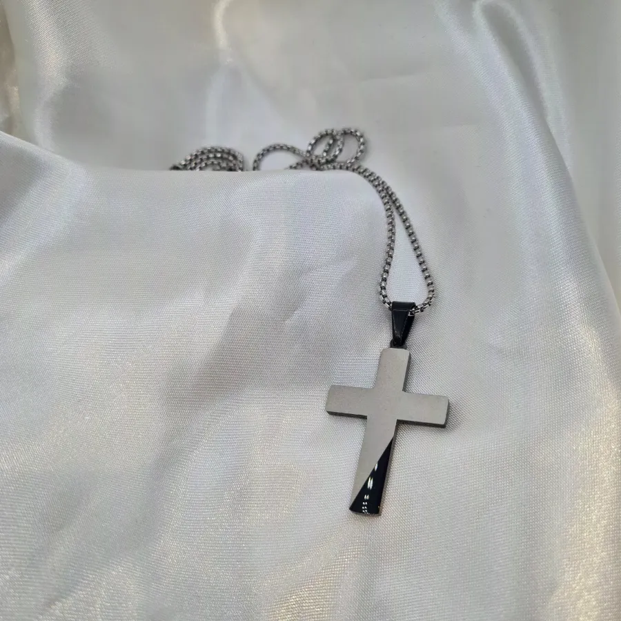 Ένας minimal σταυρός με ανατροπή, χάρη στη διακριτική αλλά εντυπωσιακή σκουρόχρωμη γωνία που “κόβει” τη βάση του και δημιουργεί ένα παιχνιδιάρικο contrast . Η καθαρή, γεωμετρική του φόρμα τον κάνει ιδανικό για unisex στιλ, από casual street outfits μέχρι πιο προσεγμένες βραδινές εμφανίσεις.
