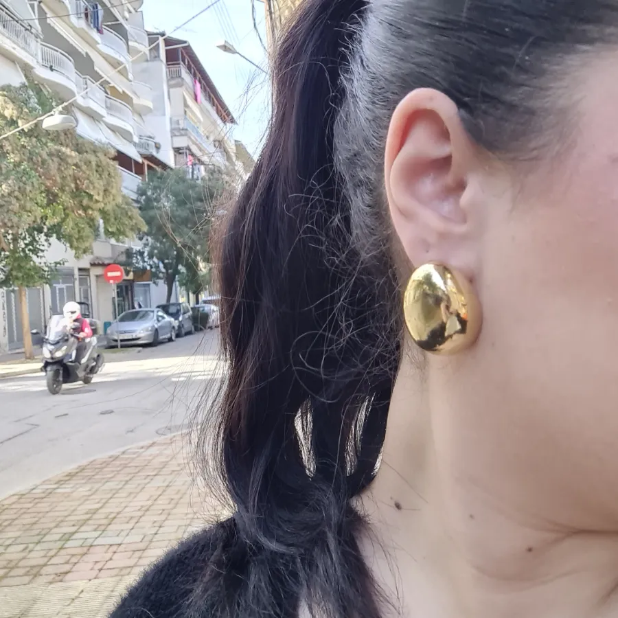 Η απλότητα μπορεί να δείχνει αληθινά πολυτελής, και τα Golden Pebbles το αποδεικνύουν. Οι γεμάτες, οβάλ φόρμες τους μοιάζουν με μικρά, χρυσά βότσαλα και χαρίζουν στο πρόσωπο μια ήρεμη, διακριτική λάμψη που αναδεικνύει εξίσου όμορφα ένα basic t-shirt ή ένα κομψό φόρεμα.