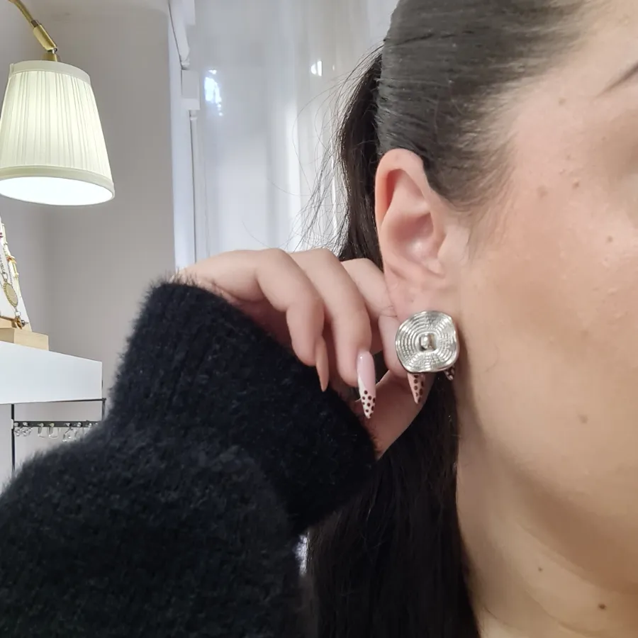 Αναδείξτε τη μοντέρνα πλευρά του στυλ σας με τα Silver Echo, ένα ζευγάρι ατσάλινων σκουλαρικιών με ιδιαίτερο γεωμετρικό design. Οι στρωτές, κυκλικές χαράξεις που καταλήγουν σε ένα τρισδιάστατο κεντρικό σημείο δημιουργούν εντυπωσιακή αίσθηση βάθους και κίνησης, χαρίζοντας στο πρόσωπο διακριτική αλλά ξεχωριστή λάμψη. Ιδανικά για να φορεθούν από το πρωί στο γραφείο μέχρι το βράδυ σε πιο προσεγμένες εμφανίσεις, ταιριάζουν υπέροχα τόσο με minimal όσο και με πιο statement σύνολα.