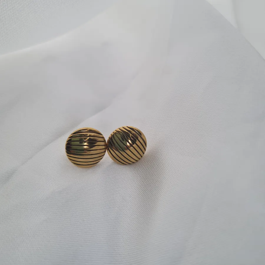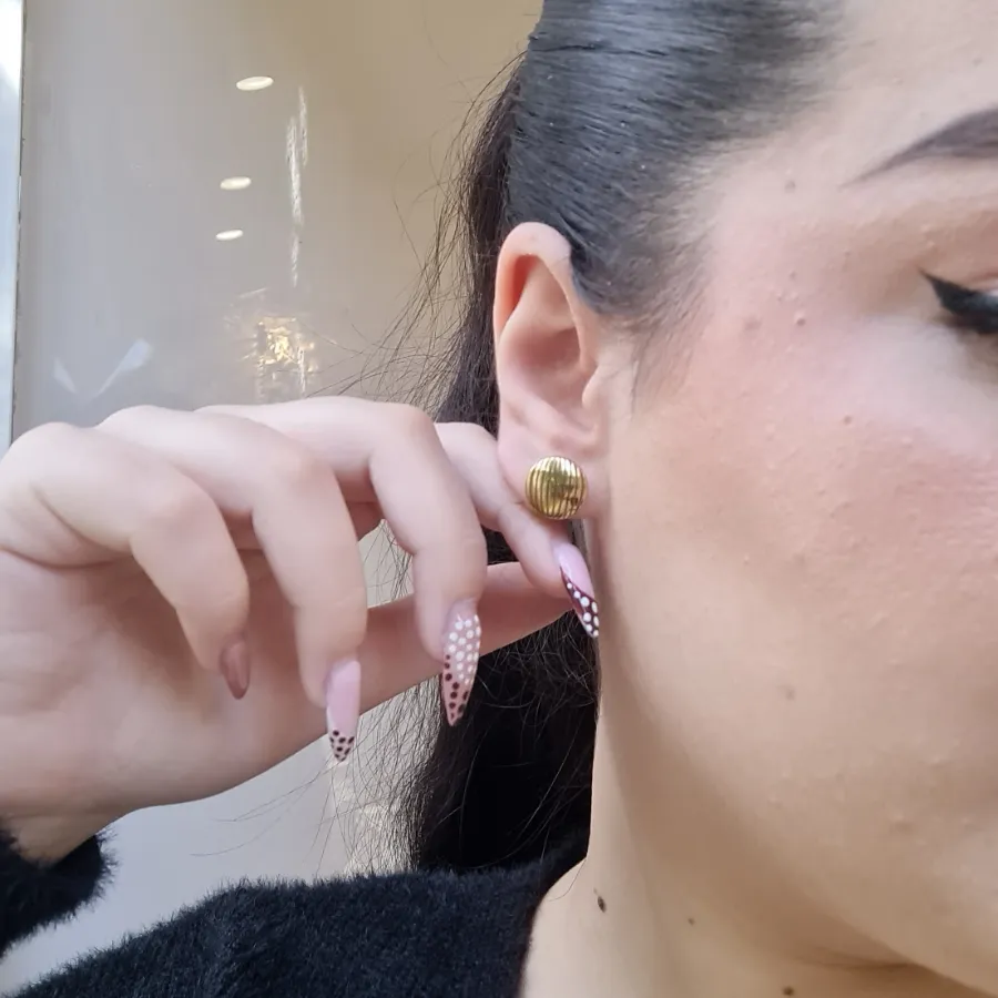 Δώστε μια παιχνιδιάρικη αλλά κομψή νότα στο look σας με τα Striped Glow – ένα ζευγάρι ατσάλινων σκουλαρικιών σε κλασικό στρογγυλό σχήμα, διακοσμημένων με γραμμές που αγκαλιάζουν απαλά την επιφάνεια. Οι λεπτές ρίγες δημιουργούν κίνηση και ενδιαφέρον χωρίς υπερβολές, ενώ η γυαλιστερή χρυσή απόχρωση φωτίζει το πρόσωπο και ταιριάζει εύκολα με κάθε παλέτα. Ιδανικά για καθημερινές εμφανίσεις, αλλά και για βραδινές εξόδους όταν θέλετε ένα διακριτικό αλλά ξεχωριστό touch.