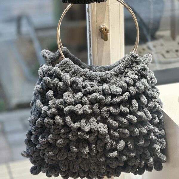 Μοναδική χειροποίητη πλεκτή τσάντα με ιδιαίτερη υφή και κομψή μεταλλική στρογγυλή λαβή, που συνδυάζει μοντέρνο design με διαχρονική αισθητική. Η ανάγλυφη πλέξη της χαρίζει χαρακτήρα και πολυτέλεια, καθιστώντας την ιδανική επιλογή για καθημερινές αλλά και πιο ιδιαίτερες εμφανίσεις.