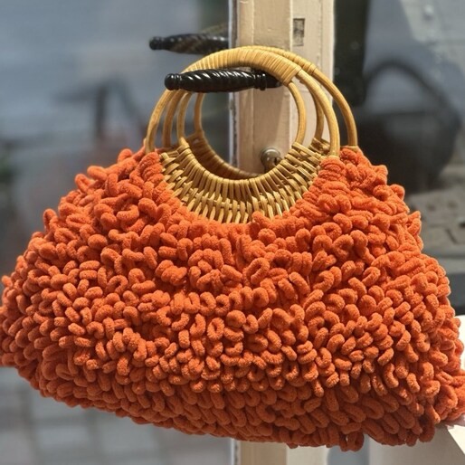 Μοναδική χειροποίητη πλεκτή τσάντα με ιδιαίτερη υφή και κομψή bamboo στρογγυλή λαβή, που συνδυάζει μοντέρνο design με διαχρονική αισθητική. Η ανάγλυφη πλέξη της χαρίζει χαρακτήρα και πολυτέλεια, καθιστώντας την ιδανική επιλογή για καθημερινές αλλά και πιο ιδιαίτερες εμφανίσεις.