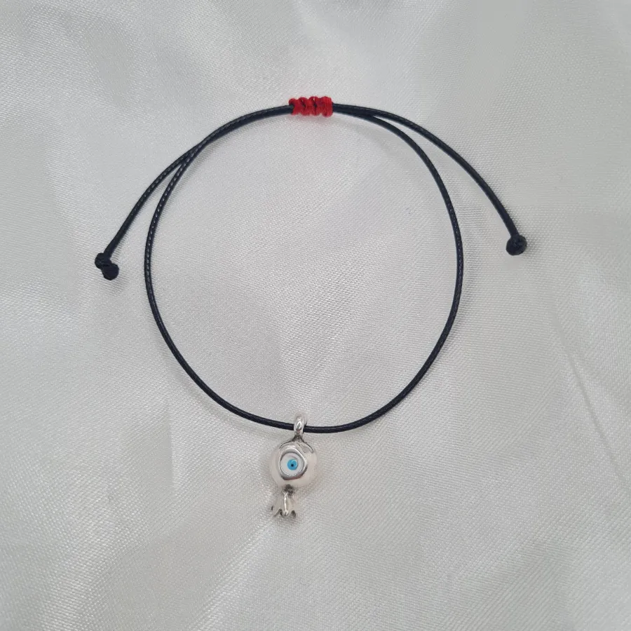 Ένα διακριτικό βραχιόλι–γούρι που συνδυάζει το minimal μαύρο κορδόνι με ένα μικρό ασημί ματάκι, για διακριτική προστασία στον καρπό σου. Το δέσιμο με κόκκινο νήμα στο επάνω μέρος δίνει την απαραίτητη πινελιά χρώματος και κάνει το σύνολο να δείχνει πιο playful, χωρίς να χάνει την καθαρή, everyday αισθητική του.