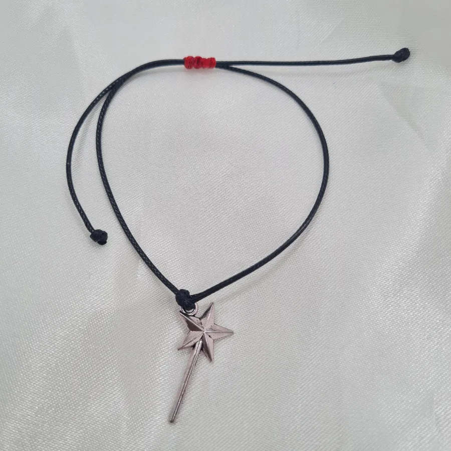 Ένα minimal αλλά statement βραχιόλι με μαύρο κορδόνι και ασημί charm σε σχήμα μαγικού ραβδιού, για όσες προτιμούν το πιο ψυχρό, urban φινίρισμα. Η ανάγλυφη αστερόσκονη στην άκρη του ραβδιού δίνει διακριτική λάμψη, χωρίς να γίνεται υπερβολική, ώστε να ταιριάζει εύκολα σε κάθε καθημερινό outfit.