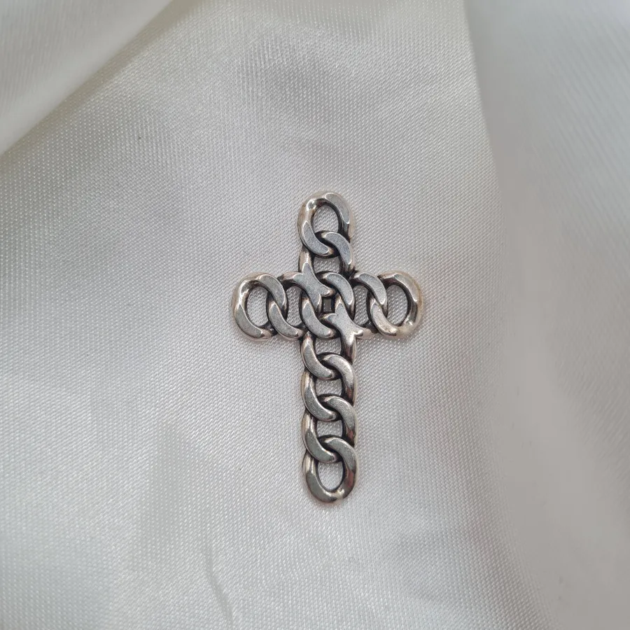 Σταυρός από συνδεδεμένους κρίκους, με διακριτό αλλά δυναμικό χαρακτήρα, ιδανικός για minimal θρησκευτικά ή συμβολικά κοσμήματα.